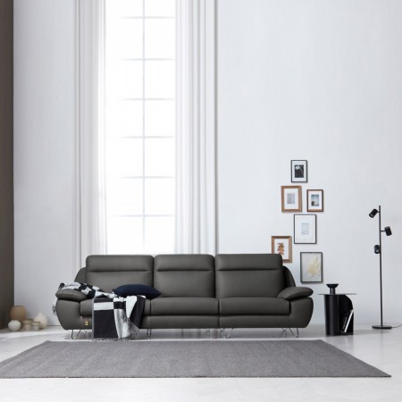 • 다우닝 레아 4인 전체 천연가죽 소파 (색상:진 그레이)